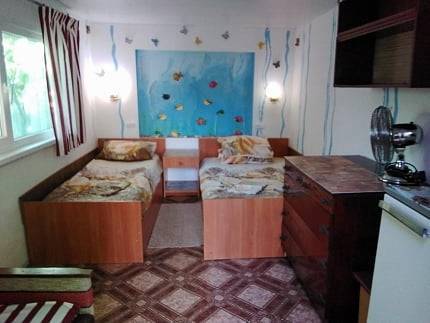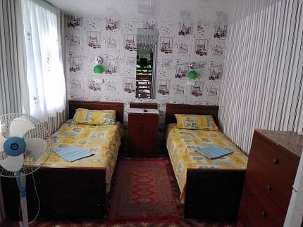 В номере 2х и односпальные кровати, постельное белье, холодильник, телевизор, вентилятор,WI-FI, на территории кухня, души с гор. водой, туалеты смываемые.