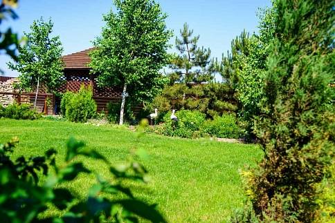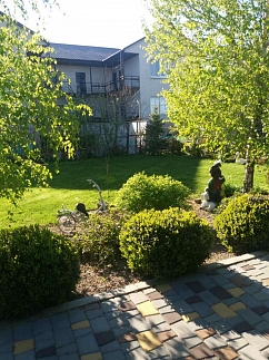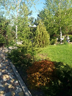 Большой двор с ландшафтным дизайном и зелёными лужайками, летняя беседка с "Барбекю зоной", виноградная арка и многое другое. Территория мини-гостиницы и стоянка для автомобилей охраняются круглосуточно.