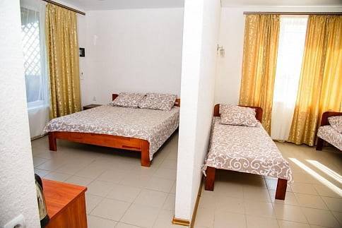 Новое современное 2-х этажное строение. Все номера имеют индивидуальный вход. Гостиница состоит из комфортабельных 2-х, 3-х и 4-х мест. номеров «ЛЮКС», оборудованные для максимального комфорта наших гостей. Номера на втором этаже с выходом на просторную солнечную террасу с видом на море.