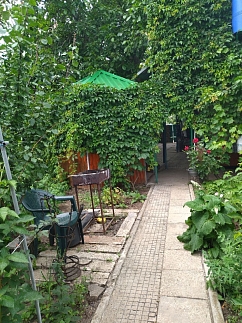 Двор утопает в зелени, что создает уют и прохладу даже в жару.До центра города 20 минут на автобусе (остановка в 5-ти минутах ходьбы), 10 минут на авто.