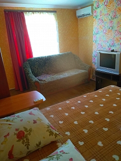 В номере:спутниковое ТВ,холодильник ,сплит-система, санузел (унитаз, умывальник, встроенная душевая кабинка) горячая вода круглосуточно .Есть номер с индивидуальной кухней,подобие однокомнатной квартиры.
