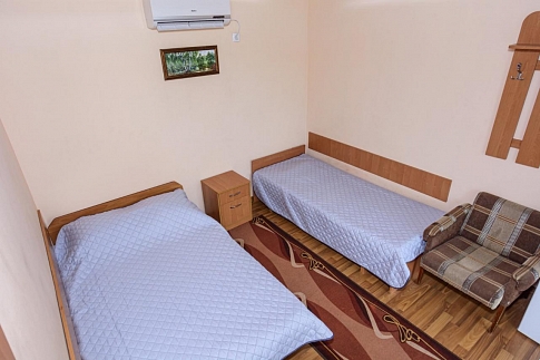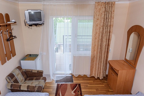 Предлагаем уютные 2-х, 3-х местные номера для отдыха у моря. К вашим услугам зеленый уютный дворик с мангалом и местом для отдыха. До пляжа 5-6 минут ходьбы. При необходимости - встретим вас с вокзалов Бердянска. Номерной фонд гостевого дома состоит из 10 номеров, которые расположены в капитальном двухэтажном корпусе. В номерах необходимая мебель, кондиционер, телевизор, холодильник, санузел и душ с горячей водой, доступ к сети Интернет WI-FI. Все номера имеют свой индивидуальный выход во двор, либо на террасу, а также комплект летней мебели.Для самостоятельного приготовления пищи имеется большая кухня-столовая со всей кухонной утварью.