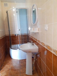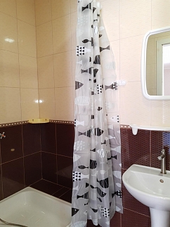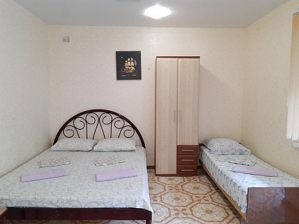 Предлагаем комфортабельные номера на 2-х,3-х,4-х,5-ти местные . В номерах: холодильники, телевизоры (Спутниковое ТВ), мебель, двуспальные кровати с ортопедическими матрасами, вентиляторы, кондиционеры. Душевая и санузел с горячей и холодной водой. Имеется возможность готовить самим - кухня со всем необходимым для приготовления пищи,стиральная машина. На территории Wi-Fi интернет, мангал, место для авто.