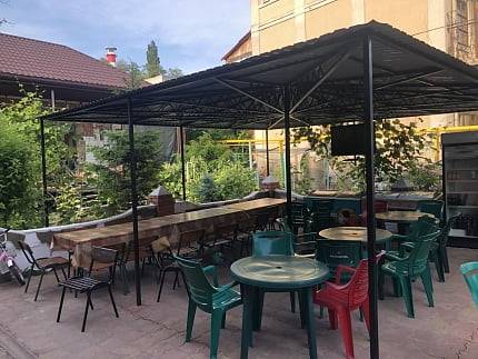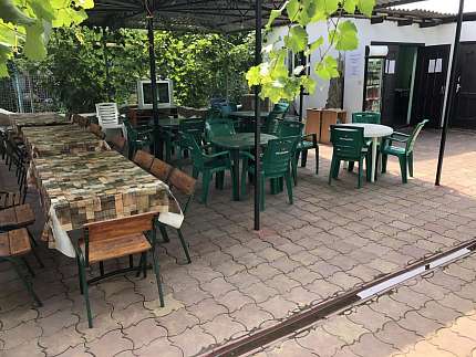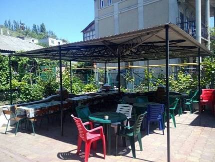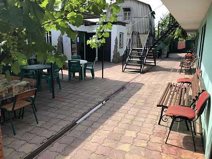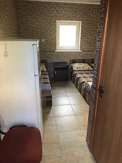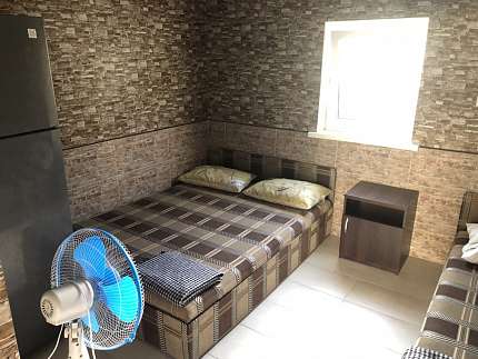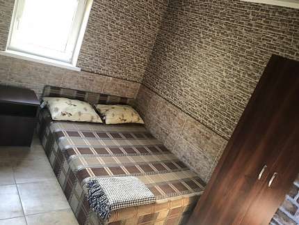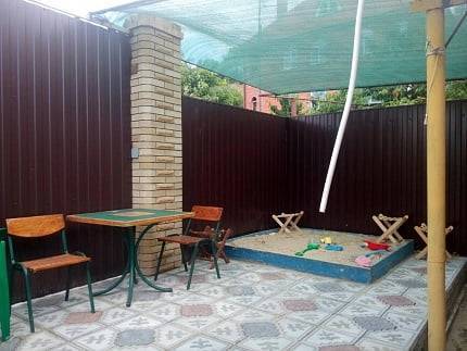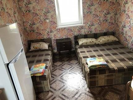 Минигостиница в частном секторе г.Бердянска,в экологически чистом районе Лиски.До моря 1 минута ходьбы.Пляж песчаный,оснащён навесом,зонтиками и лежаками. Вся территория озеленена фруктовыми деревьями,есть качеля,песочница для деток. На территории есть кухня для самостоятельного приготовления пищи,оборудованная всей необходимой посудой и микроволновой печью. В номерах:двуспальная кровать,полуторная,тумбочка,вешалка,столик,зеркало,холодильник,вентилятор(душ с горячей водой,сливной туалет на территории) стоимость номера от 400-450грн в сутки ,если душевая кабина,туалет и умывальник в номере—стоимость от 600грнв сутки за номер, с кондиционером 3х местный -700грн. На всей территории Wi-fi. В беседке есть телевизор и столики для принятия пищи. Встречаем с вокзалов. Услуги врача педиатра. Милости просим!
