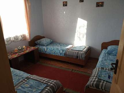 Предлагаем отдохнуть на Дальней косе. Чистый песчаный пляж, теплое море, свежий воздух.4 комнаты 2-х, 3-х, 4-х местные с постельным бельем, столовыми приборами. Общая кухня с необходимой посудой. Летний душ с горячей водой (бойлер) и туалет на улице.Мангал, стоянка для машины.Мы находимся со стороны моря. До моря 3-4 мин. ходьбы. Рядом остановка конечная маршрута № 15, магазин, аптека.