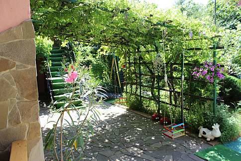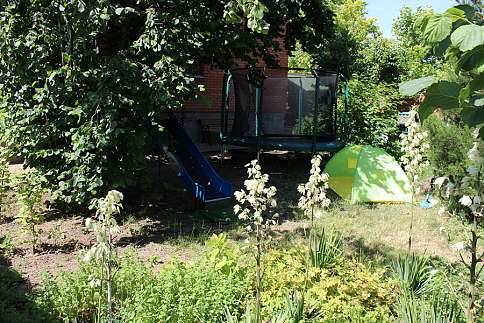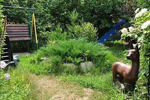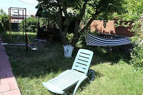 6) Большой фруктовый сад с шезлонгами + предоставим мангал, шампура и решетки для барбекю.