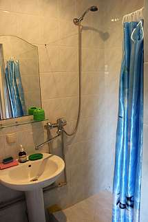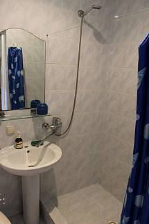 В комплектацию номера входит: душ (горячая/холодная вода), туалет, умывальник, холодильник, электрочайник, посуда для завтрака, телевизор, спутниковое телевидение, 2-х и односпальные кровати + возможна установка детской кроватки, большая лоджия, кондиционер, фен.