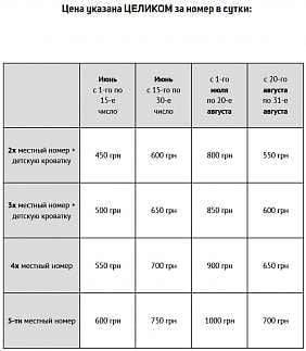Обед + завтрак стоимость 160 грн, детская - 100 грн.