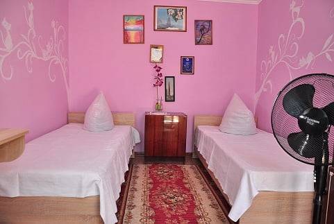 Есть 2 двухместных номера Люкс с туалетом и душевой кабиной внутри номера. Также в номере спутниковое телевидение, холодильники, вентиляторы, Wi-Fi интернет, художественные картины.На территории располагаются: кухня, уголки отдыха, второй большой плазменный телевизор со спутниковым ТВ на 200 каналов, настольные игры, мебель, горячие души, туалеты со смывными унитазами, мангал, цветочные клумбы, зеленые насаждения, автостоянка, стиральная машина, умывальники, видеомагнитофоны, магнитолы.Рядом с домом: остановки общественного транспорта в центр города и на открытое море. Вблизи остановок магазины, столовые, домашние кухни и детская игровая площадка.Также имеется возможность остановиться на лечение и отдых в частном секторе вблизи моря и санаториев курорта "Бердянск".Стоимость проживания по улице Новороссийской составляет от 80 грн с человека в сутки.