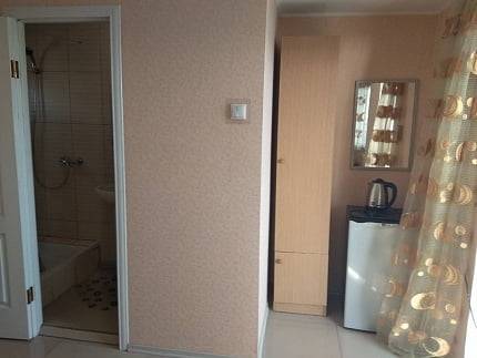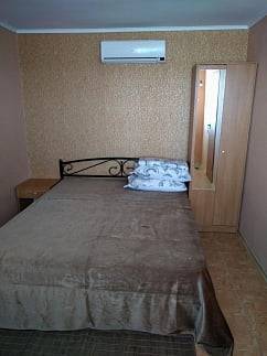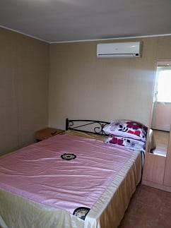 К вашим услугам чистые комфортабельные номера, закрытая небольшая территория, находящаяся под круглосуточным видеонаблюдением, интернет Wi-Fi . В номерах современная мебель, телевизор, холодильник, кондиционер, электрический чайник, комплекты постельного белья. В каждом носере есть санузел, оборудованый унитазом, душем и умывальником с горячей водой.На втором этаже есть большая терраса с видом на море со столиками для каждого номера. К сожалению территория двора небольшая, для маленьких детей нет надлежаще подготовленных условий. Поэтому вынуждены отказать в гостеприимстве семьям с детками до 10 лет.