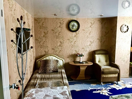 Мы расположены посредине между Бердянской косой и Приморской площадью. Мы располагаем шестью номерами. Одна треть из которых имеет люкс комфортность. Остальные номера разбиты попарно и имеют туалет и ванную комнату.