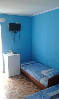 Вашему вниманию предлагается комфортабельный отдых на берегу Азовского моря. Тихий район для людей уставших от городской суеты.Территория коттеджа полностью благоустроена для семейного отдыха. Большая детская площадка, маггал-зона,стоянка для авто. Вся площадка затененная.Номера первого этажа:односпальняя и двухспальная кровати, кондиционер , холодильник, шифонер, телевизор ( цифровое тв ).Номера второго этажа : односпальняя и двух спальная кровати,кондиционер, холодильник,шифонер, телевизор,санузел.