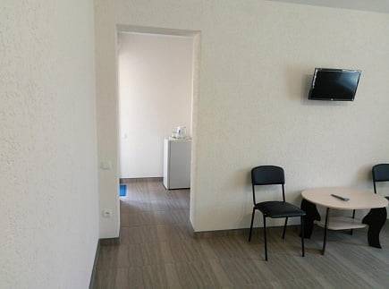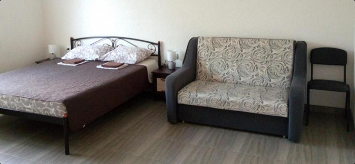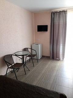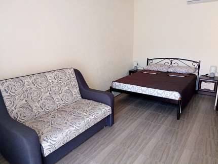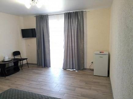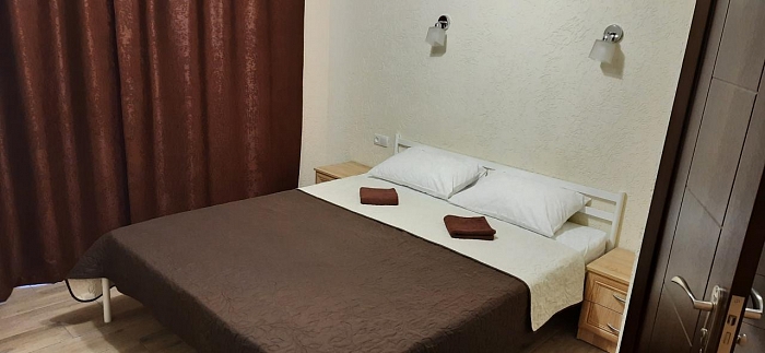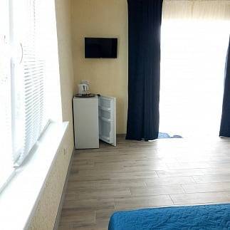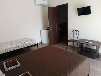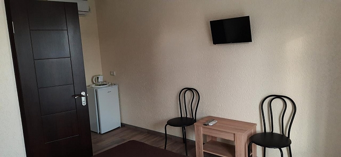 В номере: кондиционер, холодильник, двухспальная кровать, диван, телевизор, Wi-Fi, санузел, душ, чайник,постельные принадлежности, полотенца,гладильная доска,утюг и фен выдаются по неоходимости.