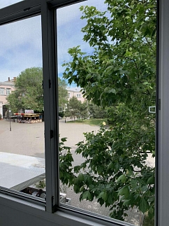 Аренда - однокомнатная квартира в центре Бердянска с видом на море (проспект Азовский 28). Двуспальная кровать, диван, шкаф-купе, телевизор, кондиционер, интернет, стиральная машина, душевая кабина с горячей водой, балкон с видом на Приморскую площадь. Максимум 4 человека.Стоимость проживания