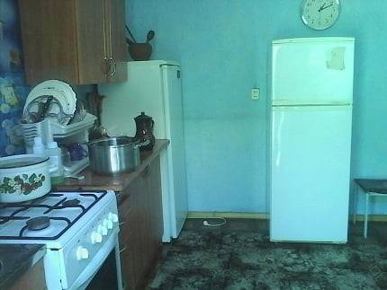 Общая кухня со всем необходимым (газовая плита, 2 холодильника, микроволновка).