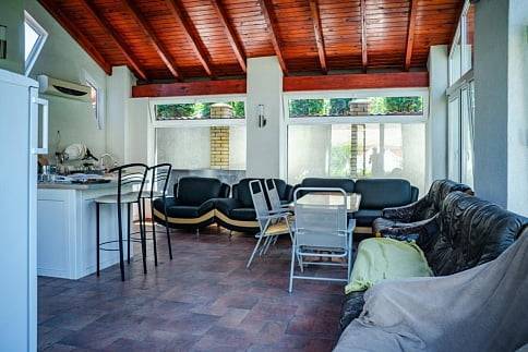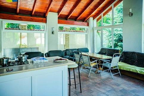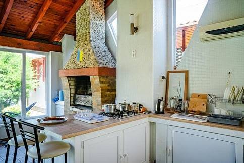 Также на территории находится барбекю, где каждый может порадовать себя вкусным шашлыком и овощами на гриле.
