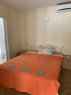 Предлагаем 2-местные, 4-местные номера и апартаменты (2 спальни + туалет + общая комната)В номерах есть все удобства: душ, туалет, кондиционер, телевизор, холодильник, wi-fi. Есть терраса. Номера располагаются на 1 и2 этажах.Есть кухня, мангал, песочница для деток.