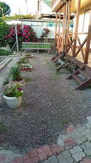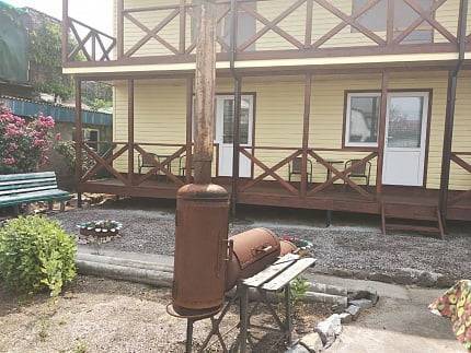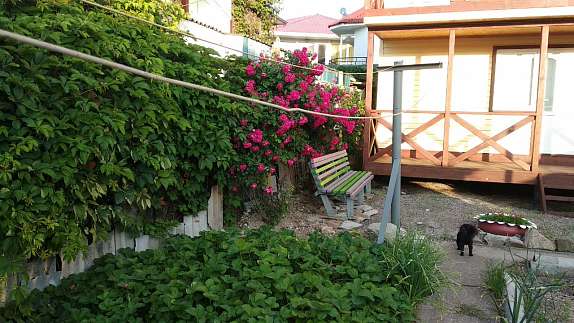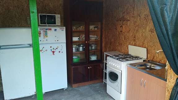 Кухня со всем необходимым для самостоятельного приготовления пищи расположена отдельно. В кухне имеются посуда (тарелки, миски, кастрюли, сковородки, ложки, вилки, чашки, ножи), чайник, холодильник, кух.плита, микроволновка печь.В номерах кухни нет, бытовые приборы (чайник, плита, холодильник) в номерах отсутствуют.Терраса со столиками возле номеров.Стоянка для авто.Мангал, Wi-Fi Интернет.Рядом магазины, кафе, автобусная остановка (на Косу, дельфинарий, аквапарк, зоопарк).До моря 500 метров (5-7 минут ходьбы).Стоимость проживания указана за одного человека для номера Эконом 125 гривен.
