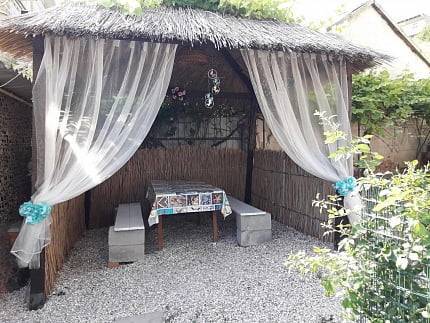 Во дворе душ, горячая вода круглосуточно (газовая колонка), кухня, ТВ, столики, мангал, место под авто, трансфер. Встречаем с любой точки города