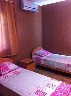 Номера 2, 3, 4, 5 местные. В номерах холодильник, спутниковое ТВ, кондиционер, WI-FI, стоимость проживания от 100грн. до 120грн. с человека. на длительное время скидка