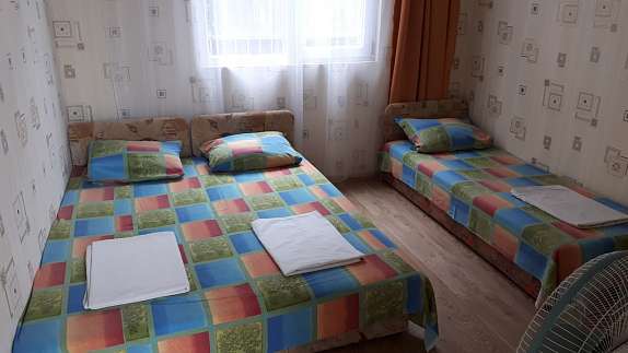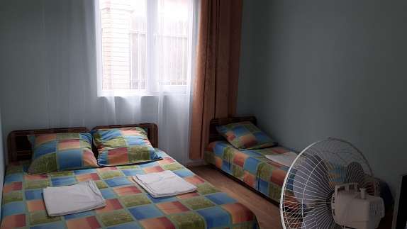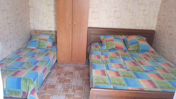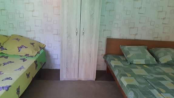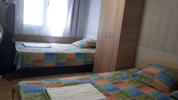 Для приятного и полноценного отдыха предлагаю комфортабельные 2-3-4-х местные номера. Душ с горячей водой и туалеты со смывом. Большой, красивый двор полный зелени и цветов, где по вечерам можно жарить шашлыки и просто приятно отдыхать. До моря 5 минуты. В номере кровати, тумбочка, вентилятор, холодильники, кухня, посуда есть и кухонная и столовая. 3 кафе на пляже. Магазины 200 метров. Места хватит на всех, навесы, шашлычница, песочница, стоянка для автомобилей. В 20 мин. от дома луна парк, аквапарк, дельфинарий, зоопарк Приезжайте, будете довольны, будете ехать не своим транспортом, встретим.Находимся мы по адресу ул.Запорожских казаков 34