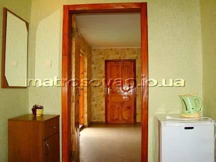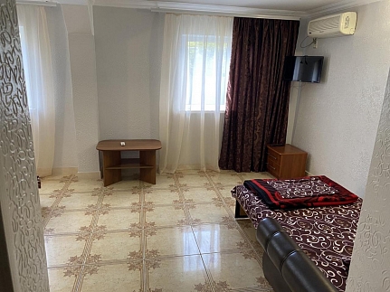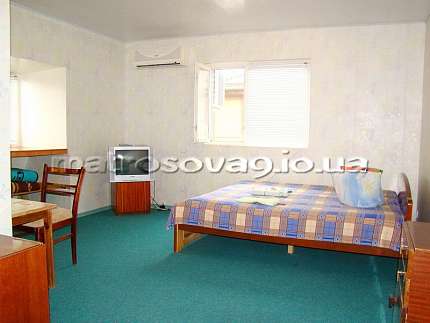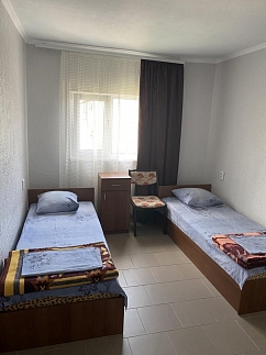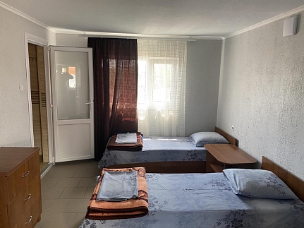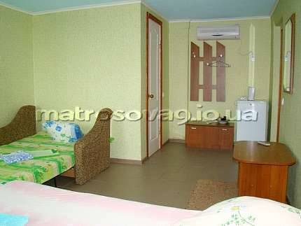 Дорогие отдыхающие к Вашим услугам 2-х, 3-х и 4-х местные комфортабельные номера «Люкс», «Полулюкс» и «Эконом» класса, оборудованные для приятного времяпрепровождения всего в 50-ти метрах от берега моря с песчаными пляжами.Номера оснащены мебелью, кондиционерами (или вентиляторами), телевизоры (кабельное ТВ), холодильниками, электрочайниками.Бесплатный Wi-Fi Интернет на территории.В номерах регулярно производится влажная уборка и смена постельного белья.А также есть отдельный ДОМ под КЛЮЧ со всеми удобствами.Вы можете готовить сами: есть кухня, со всем необходимым для приготовления пищи: посуда, газовые плиты, холодильники с морозильной камерой, др.Также у нас работает столовая «Домашняя кухня», где мы рады предложить нашим гостям вкусные горячие обеды, кофе, чай, напитки и многое другое по доступным ценам.Во дворе есть летние столики для отдыха, где можно вкусно пообедать или просто приятно провести время летними вечерами, а также приготовить шашлык на мангал-шашлычнице.Обилие зелени, виноградная арка, южные плодовые деревья, цветы и другие растения.Стоянка для автомобилей на территории.Развитая инфраструктура: аквапарк, дельфинарий, зоопарк, кафе-бары, магазины, аптеки, остановки автобуса – всё рядом.Стоимость указана с человека в сутки (уточнять по телефону)