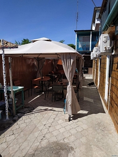 В номерах в наличии: холодильник, телевизор (спутник, Т2), кондиционер, вентилятор.Удобства (душ и туалет) на несколько номеров. В номерах Люкс - душ и туалет внутри номера.Кухня общая со всем необходимым.Wi-Fi, мангал, место под авто.Рядом - магазины, супермаркет, автовокзал, автобусная остановка (на Косу, аквапарк, дельфинарий, зоопарк), до пляжа 300 метровМорские сувениры бонусом для наших гостей.Стоимость указана с человека в сутки (уточнять по телефонам)