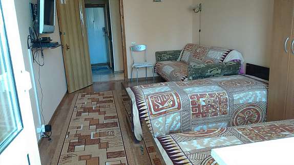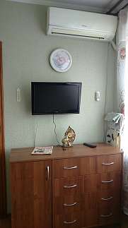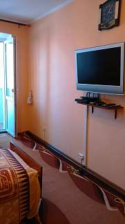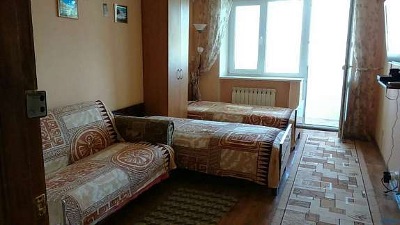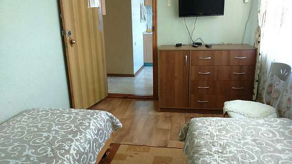 Сдается двухкомнатная квартира (район санатория "Лазурный").Раздельные комнаты, на 7 человек (в одной комнате - 3 односпальных кровати, во второй - двухспальный диван-кровать и 2 односпальных кровати)В каждой комнате - телевизор (Т2), кондиционер.Холодильник, микроволновка, утюг, стиральная машина, горячая вода ("автономка").Рядом магазины, зоопарк, аквапарк, дельфинарий, санаторная зона ("Лазурный", "Бердянск"), детские оздоровительные лагеря.Есть свой гараж во дворе дома.Предоплата за один день.
