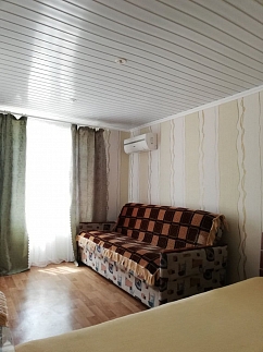 Отдельно стоящие домики одно- и двухкомнатные на 3-6 человек. В домике: душ, санузел, кухня, телевизор, кондиционер. У каждого домика - свой двор.