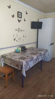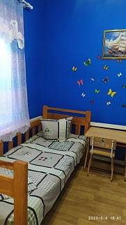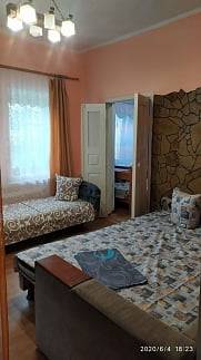 В доме 5 спальных мест: большой двуспальный диван, три односпальные кровати. В доме: зал, спальня, коридор, большая и просторная кухня, санузел. Есть всё необходимое для отдыха: чистая посуда и постельное бельё, утюг, горячая и холодная вода круглосуточно, стиральная машина автомат, микроволновая печь, газовая плита (4 конфорки) с духовкой, 2 телевизора (зал и кухня), мебель, кондиционер, электрочайник, большой обеденный стол, двухкамерный холодильник, WI-FI, интернет, Чистота и порядок в доме гарантированы! Вам понравится отдых у нас – отдельный дом и двор для вашей семьи или компании намного лучше, чем полный двор незнакомых людей! Добро пожаловать к нам! Будем рады принять Вас!