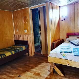 В номерах есть всё необходимое для комфортного проживания + большой двор с достаточным количеством мест отдыха на свежем воздухе (балконы, столики, + мангал, *кальян, велопрокат). Цены от 100 до 200 грн с человека. Бронь принимается не более чем за неделю до планируемого заезда.