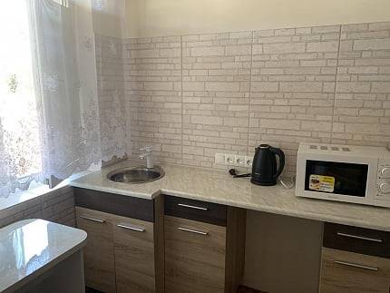 Гостевой Дом расположен в курортном районе «Лиски» в 50-ти метрах от берега моря. К Вашим услугам 2-х, 3-х и 4-х местные комфортабельные номерами «Люкс» . В номерах «Люкс»: душевая кабина и санузел (в номере), мебель, кондиционер, холодильник, ТВ, постельное .Большая кухня со всем необходимым для приготовления пищи.Все условия для отдыха: Wi-Fi Интернет, микроволновая печь, утюг, фен, горячая и холодная вода круглосуточно.На территории: летние столики, мангал, обилие цветов и зелени. Стоянка для автомобилей.Всё рядом: 50 метров до моря, магазины, кафе, остановки, 10 мин. прогулки пешком до центра города, до автовокзала – 5 мин. Цены договорные (мин. цена с человека в сутки), в зависимости от комфортности номера, сезонности и времени пребывания у нас. Все вопросы только по телефону. Приезжайте, встретим вас на вокзале, отвезём, поселим.ул. Ревуцкого(район Лиски, около Автовокзала)