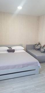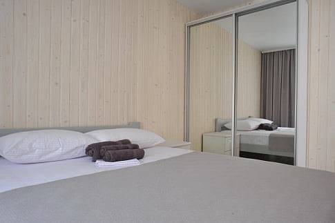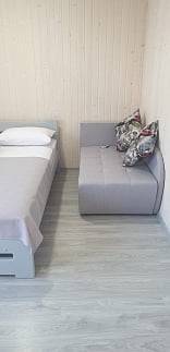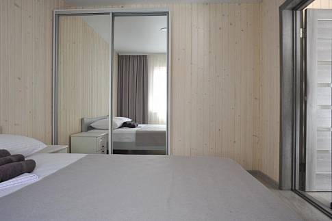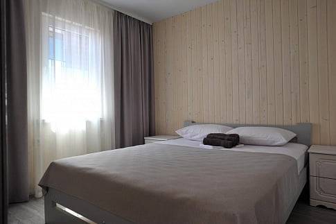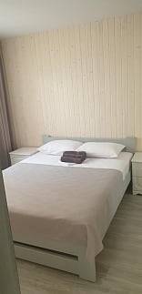 Размещение до 4 человек. В первой комнате: двуспальная кровать, шкаф-купе, тумбочки. Во второй комнате: мягкий угловой диван, телевизор, холодильник, кондиционер, столик, чайник, посуда, санузел. Покрытие пола - ламинат. Дополнительно в номер можно взять бесплатно ребёнка до 3 лет.