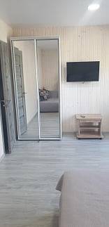 Размещение до 3 человек. Двуспальная кровать, диван-кровать, холодильник, кондиционер, телевизор, шкаф-купе, тумбочка, столик, чайник, посуда, санузел. Покрытие пола - ламинат.