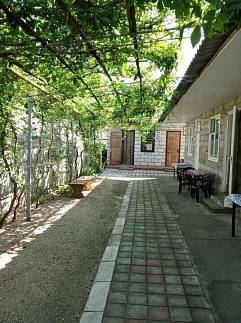 Кухня со всеми принадлежностями.Просторная территория - навес для отдыха со столами и стульями, цветы, обилие зелени. А также, мангал, автостоянка (бесплатно).