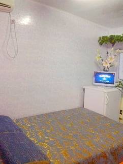 Домик в центре, отдельный комфортный. Кухня, душ, туалет внутри. Есть кондиционер, WI-FI, мангал, парковка авто. Море пляж, Луна парк с прогулочными катерами, кафе, магазины все рядом. Рынок в 2 мин (встречаем)