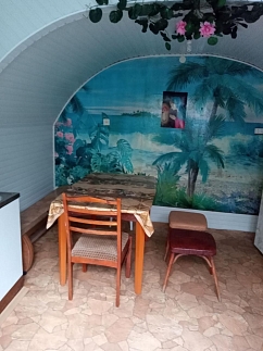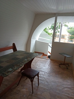 Три раскладных двухместных дивана, телевизор, холодильник, бойлер, Wi-Fi, удобства в доме.Во дворе стоянка для авто. Мангал.Отдельно есть 2х и 3х местные номера (кондиционер / вентилятор, телевизор, холодильник). Для номеров - отдельная кухня и общие удобства (душ и туалет) во дворе.Рядом магазин, остановка, до моря 3 минуты пешком.
