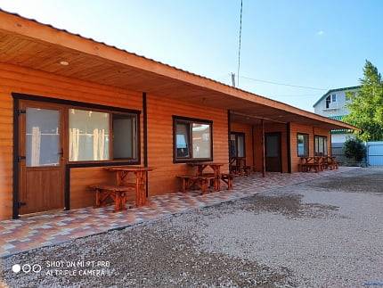 Возле каждого номера есть зона отдыха со столом и скамейками.