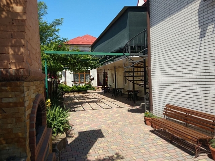 Гостиница имеет 2 этажа, есть балкон, а также мангал.