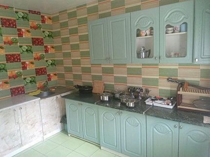 На первом этаже общая кухня с двумя холодильниками и плитой.