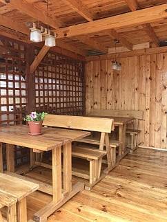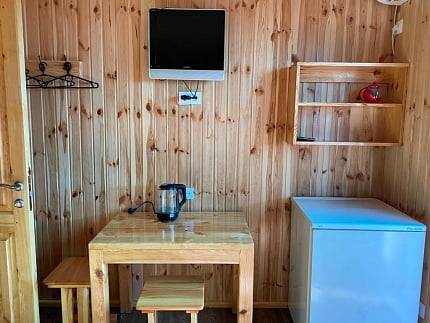 Каждый номер оборудован: двухспальной кроватью с ортопедическим матрасом, холодильником, сплит-системой, телевизором (спутниковое ТВ), Wi-Fi, электрочайником, постельное белье. Горячая вода круглосуточно.Вся территория выполнена в эко-стиле из натурального дерева.На территории есть кухня для самостоятельного приготовления. На кухне имеется микроволновая печь, три варочные поверхности на четыре комфорки, морозильные камеры и вся необходимая посуда для приготовления.Есть детская площадка.Бесплатная парковка на территории.Если Вы сторонник комфорта, уюта и спокойствия, то Вам обязательно к нам.Цены за номер:-