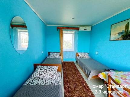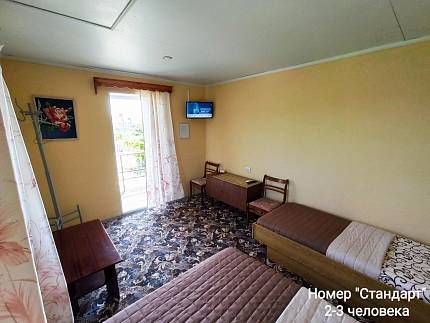 - Номера «Стандарт» расположены на втором этаже. Wi-fi, TV, кондиционеры. Номера рассчитаны на 2-4 человека.Кухня и санузел общие на первом этаже.Горячая вода от бойлера круглосуточно. На кухне есть вся необходимая посуда для приготовления еды, чайник, холодильники.