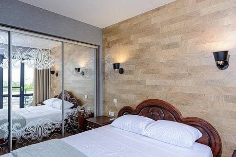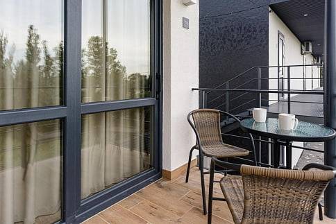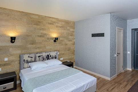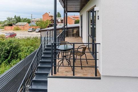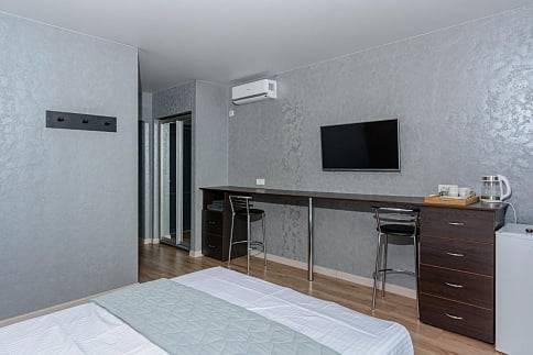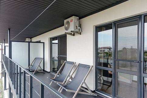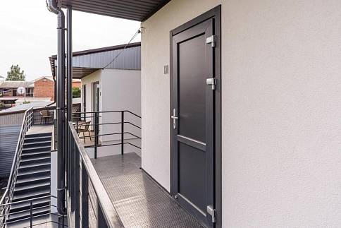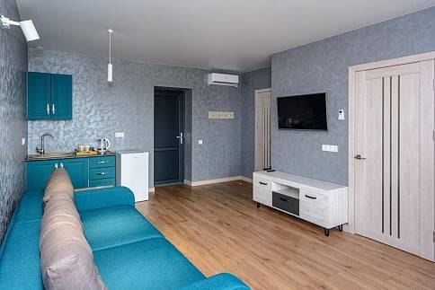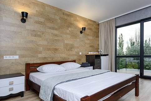 ПитаниеСамостоятельное приготовление на общей оборудованной кухне. Комплектация: газовая 4-х конфорочная печь, микроволновая печь, мойка и посуда для приготовления пищи.Номера и цены:ДвухместныйУютный двухместный номер с абсолютно новой мебелью вмещает в себя king-size кровать, телевизор, кондиционер, холодильник, шкаф купе, чайник и поднос со столовыми приборами и стаканами. В номере присутствует личный санузел с душем. В каждом номере присутствует личный балкон. Стоимость - 2000 грн/сутки за номерДвухкомнатный четырёхместныйДвухкомнатный номер идеально подойдет для семейного отдыха с детьми, ведь номер оборудован king-size кроватью в одной комнате и диваном-кроватью в другой. В номере так же присутствует мини-кухня со столовыми принадлежностями и раковиной. Телевизор, кондиционер, холодильник, чайник присутствуют. Стоимость - 2600 грн/сутки за номерЗа каждое дополнительное место - 200 грн/сутки.