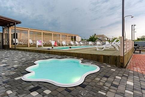 Услуги и инфраструктураПарковка под круглосуточным видеонаблюдением (бесплатно), два бассейна: взрослый размером 10×4 и детский, диаметром 3 метра с пресной водой, мангальная зона (инвентарь предоставляется).