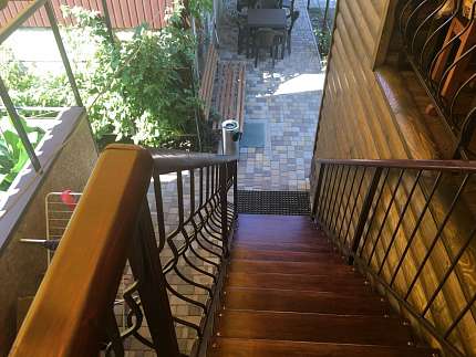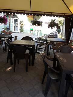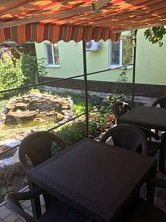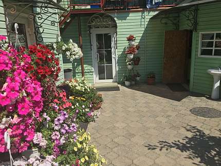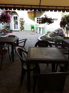 Очень красивое озеленение двора, мангал, место для авто. Также на территории гостиницы предоставляются комплексные обеды.