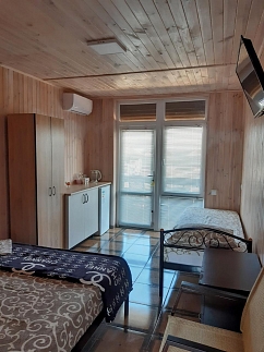 Также на территории отеля для гостей есть кафе и кухня. Вы можете как самостоятельно готовить, кухня оборудована: газовой плитой, мультиваркой, микроволновой печью, чайником и необходимой посудой, так и заказывать питание по доступным ценам.