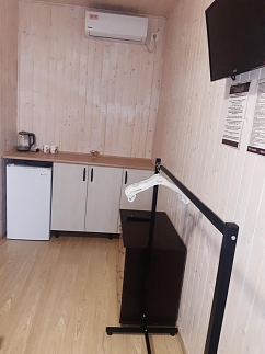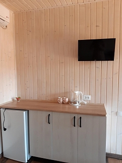 - мини-кухня с холодильником и электрочайником