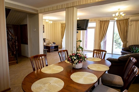 Вилла состоит из кухни, просторной гостиной, 3-х санузлов, 4 х спален. Кровати с ортопедическими матрасами( постельное и полотенца предоставляются). Три с/у с душевыми кабинами и одной ванной. На кухне есть вся необходимая техника и посуда. Гостинная с камином и телевизором. Кондиционеры есть в каждой комнате.