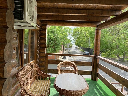 Отель представляет собой трёх этажное здание из сруба и двухэтажное здание отдельно стоящее так же из дерева с номерами.
