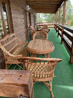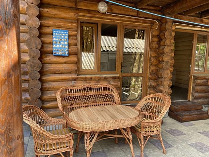 Общая кухня оборудована газовой плитой, мойкой, микроволновой печью, электрочайником, посудой и прочими кухонными принадлежностями. Для приёма пищи возле каждого номера на террасах стоят столы и стулья индивидуально закреплены за каждым номером.